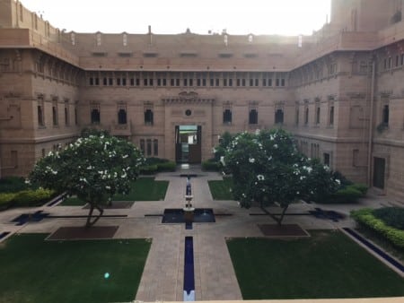 It was just us and the great outdoors. Returning to the Taj Umaid Bhawan, we were greeted again by the beautiful grounds, and that very comfortable peacock head bed.